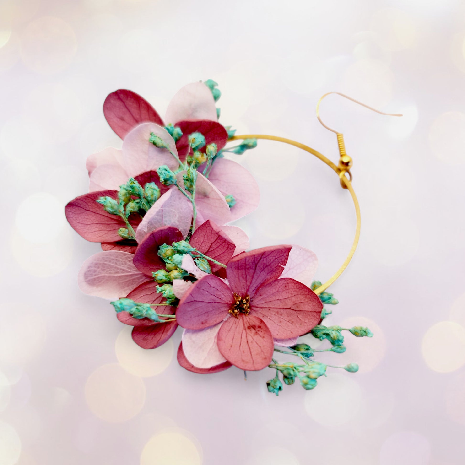Boucles d'oreilles en fleurs séchées et stabilisées