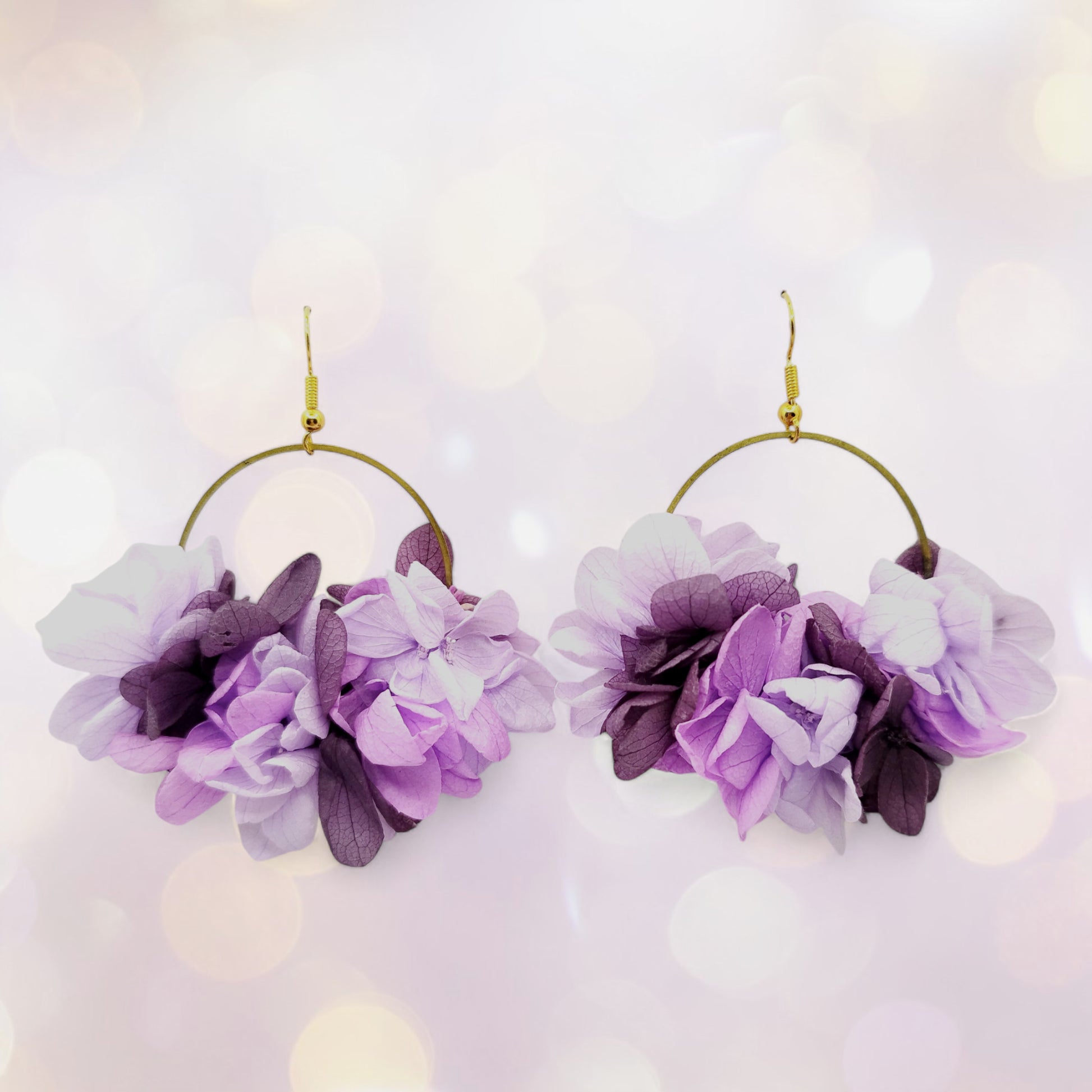 Boucles d'oreilles fleurs séchées mariage nuance de violet
