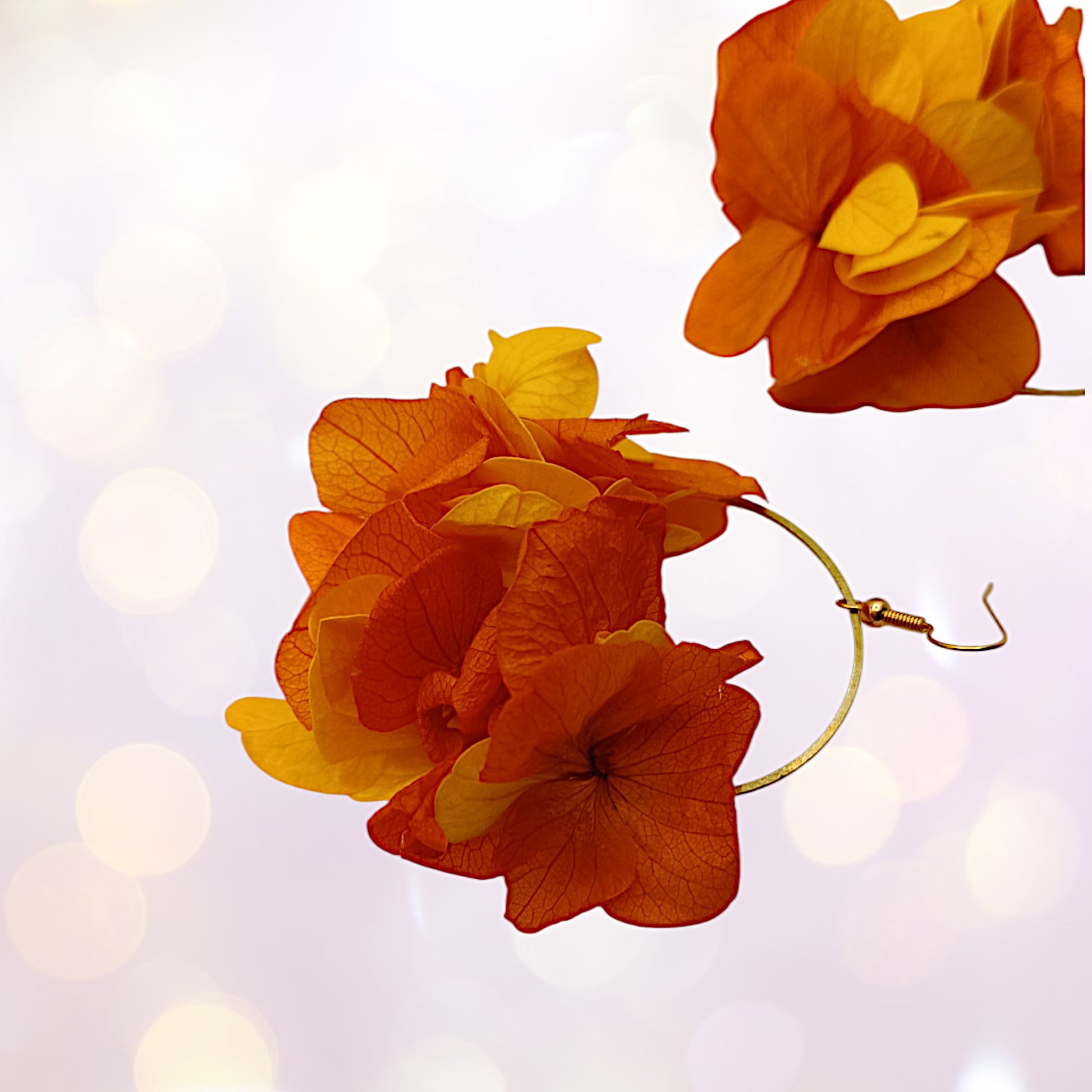 Boucles d'oreilles fleurs séchées mariage Voluptueuse jaune/orange