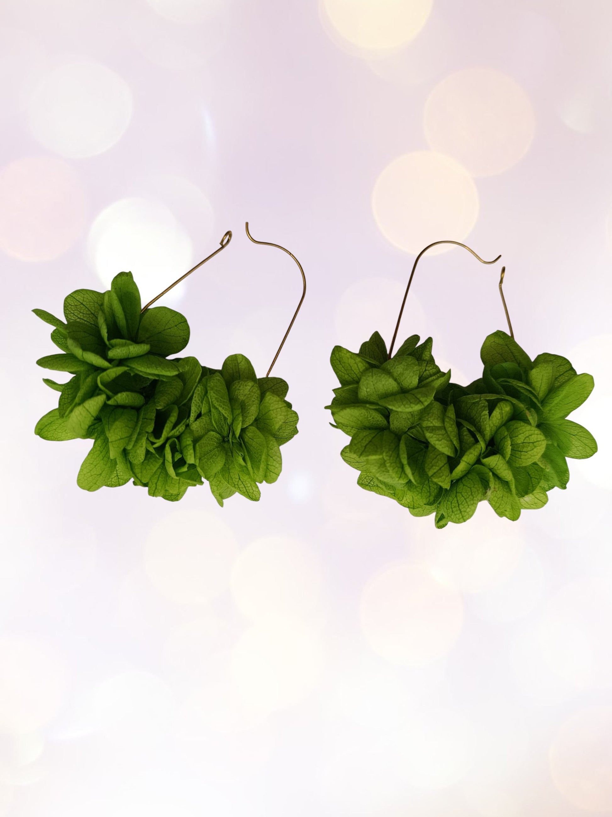 Chaque boucle se compose d'un cercle de laiton délicatement orné de fleurs d’hortensia.