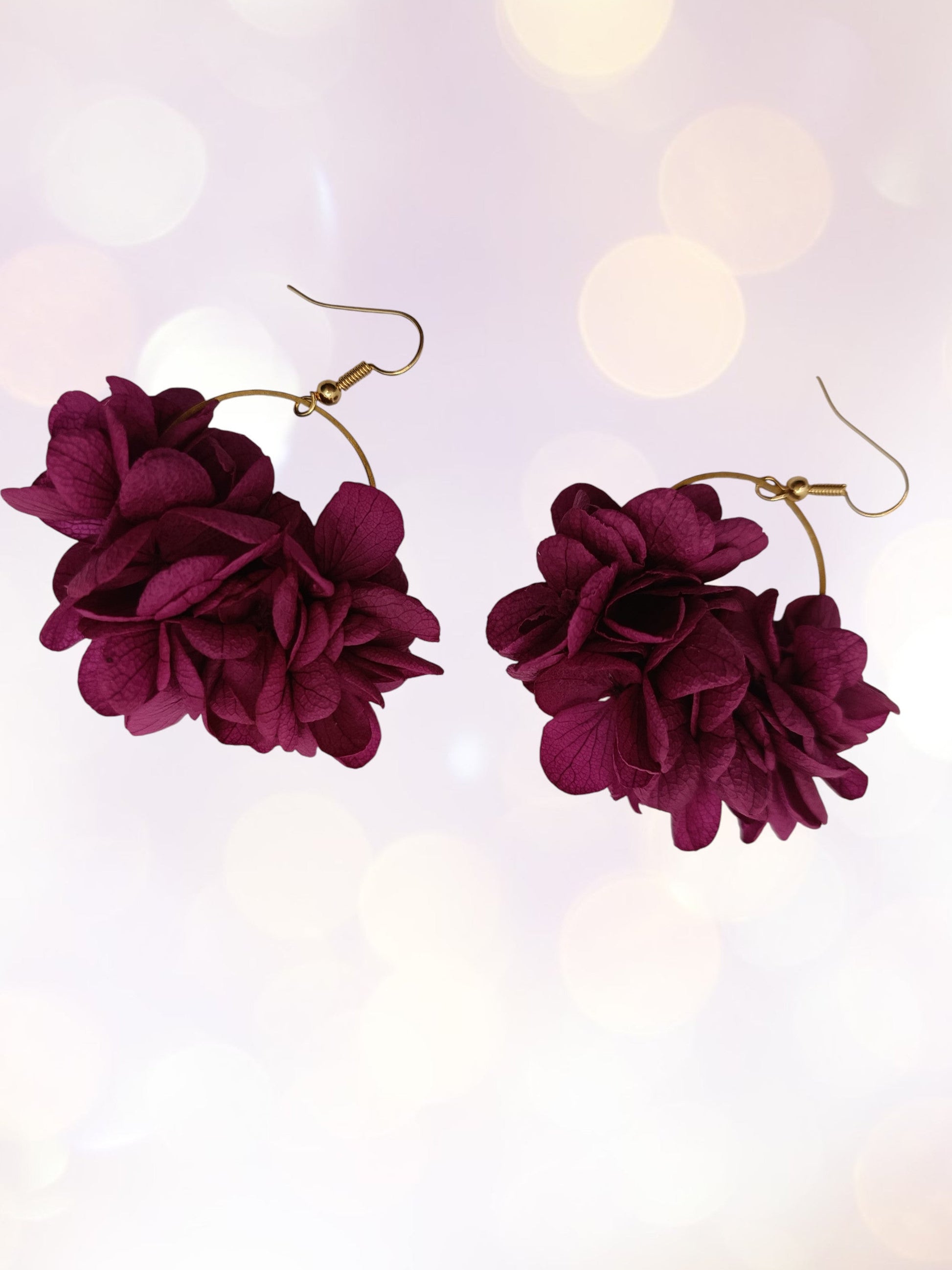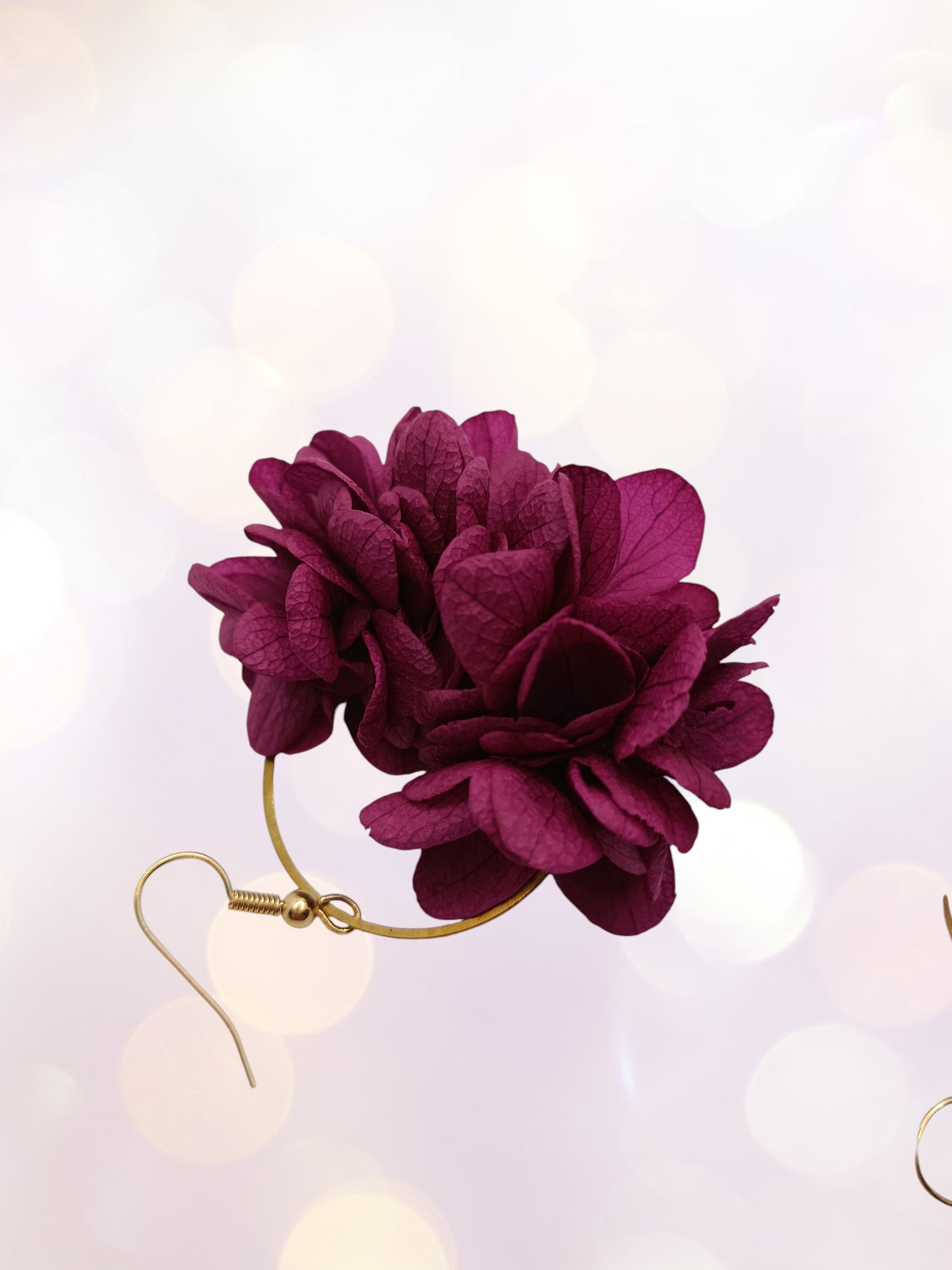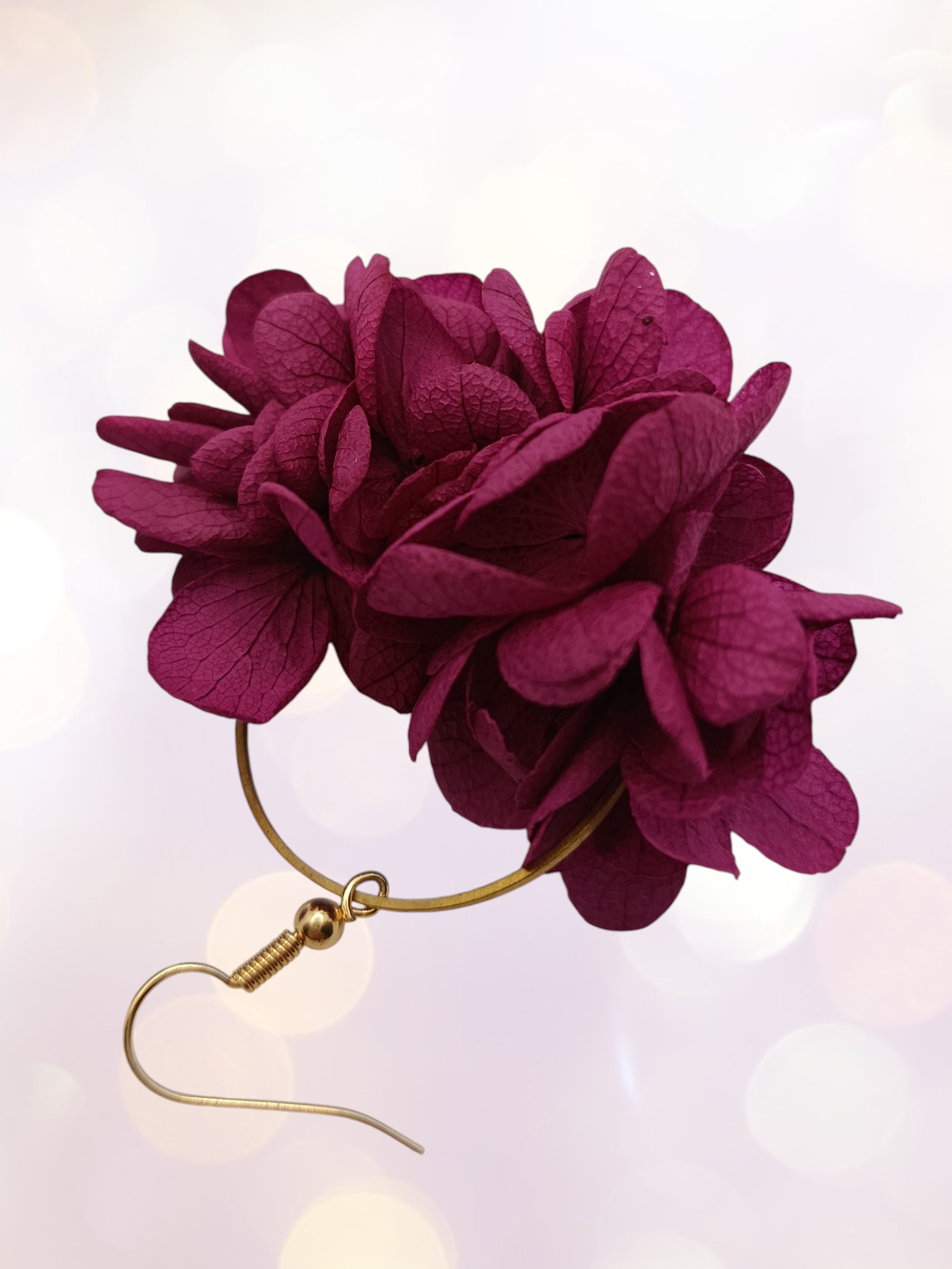 Chaque boucle se compose d'un cercle de laiton délicatement orné de fleurs d’hortensia.