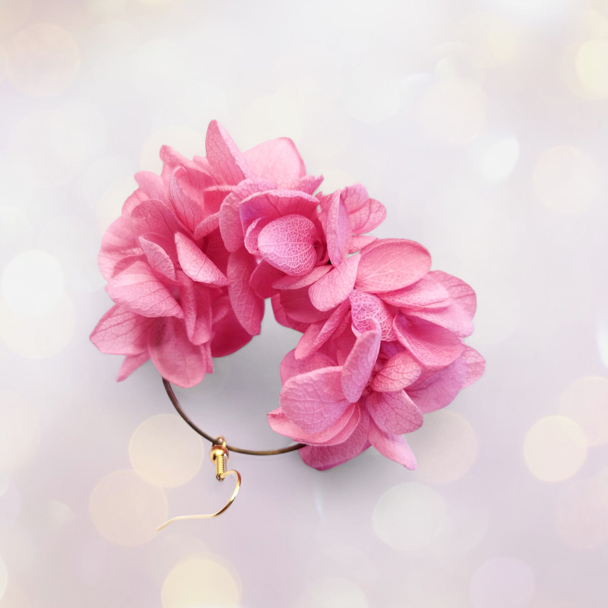 "Élégance"Boucles d'Oreilles fleurs séchées mariage hortensia rose 🌸