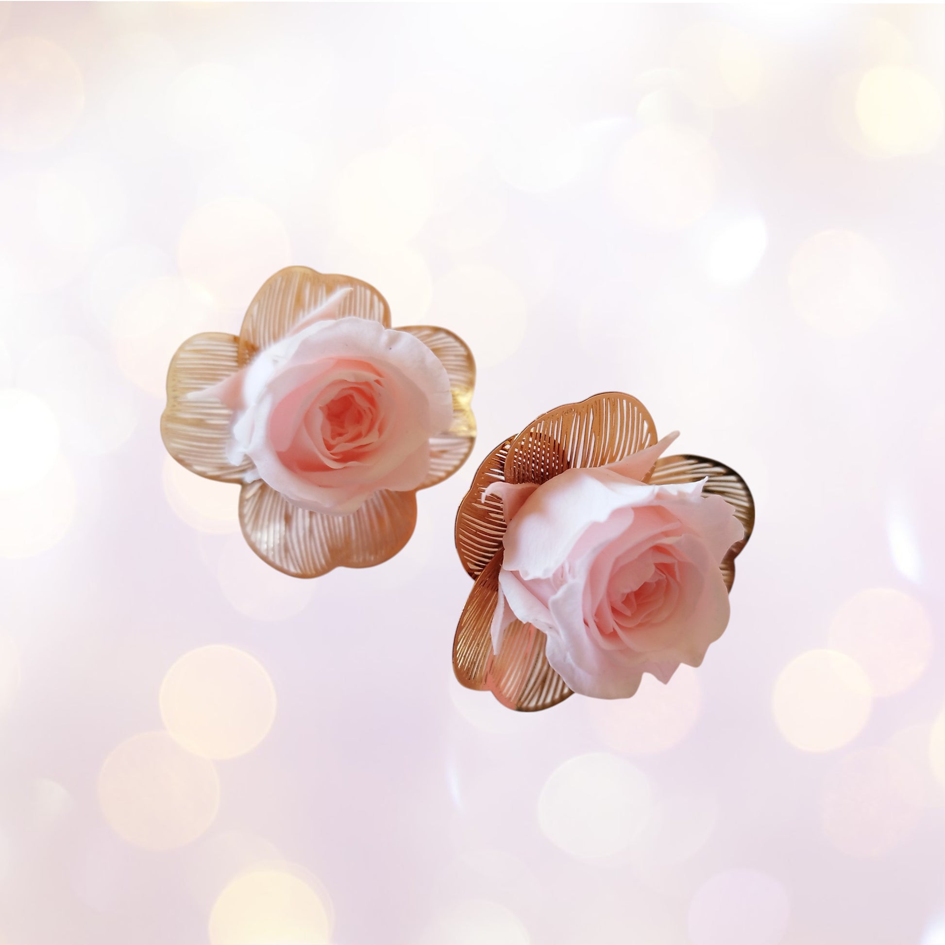 "Élégance"Puces d'Oreilles rose stabilisée mariage – Rose & Doré avec Cœur 🌸