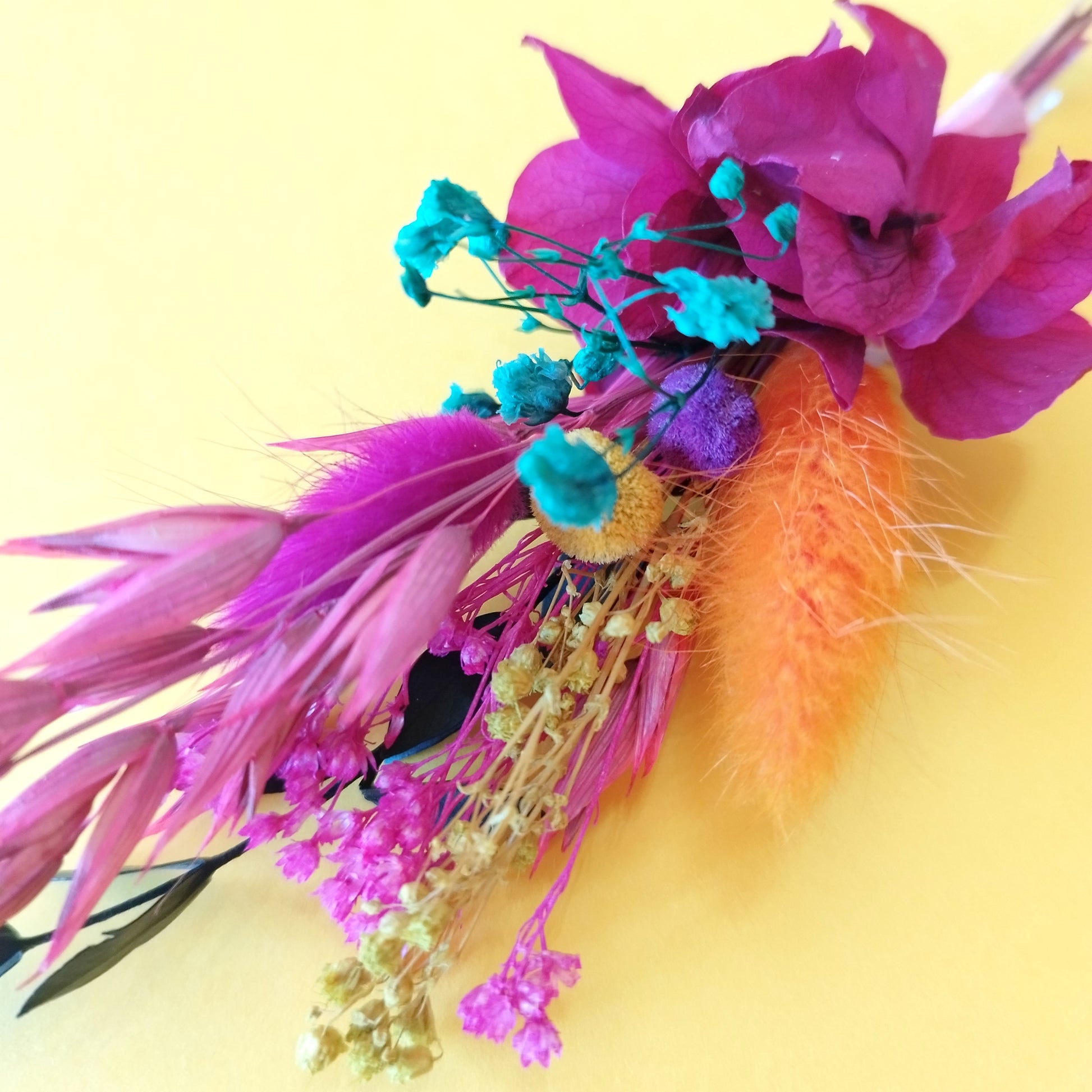 La collection Arc-en-Ciel Bohème célèbre la joie, l’amour et l’optimisme à travers des accessoires de mariage vibrants. Mélangeant des fleurs séchées et stabilisées dans un arc-en-ciel de couleurs éclatantes, chaque pièce symbolise l'énergie et la vitalité de votre grand jour. Parfaite pour la mariée qui souhaite un mariage joyeux, coloré et plein de fraîcheur naturelle.