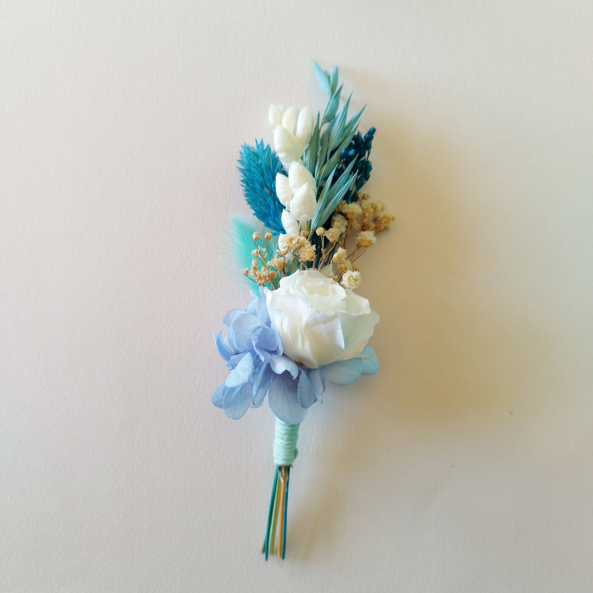 "L'Azur d'un Jour" Boutonnière fleurs séchées mariage– Élégance Florale Aimantée pour Homme 💙